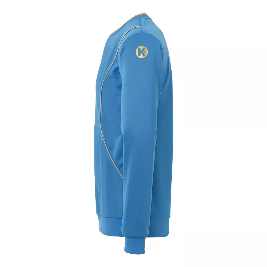 Das Kempa Herren Sweatshirt Curve Training Top besticht durch seinen asymmetrischen Kragen und kontrastfarbene Paspelierung, die dem sportlichen Design eine moderne Note verleihen. Der gestickte Kempa-Schriftzug sowie der K-Label-Aufdruck setzen dezente Markensignale. Rippbündchen am Saum und an den Ärmelöffnungen sorgen für sicheren Halt, während das leichte, atmungsaktive Material aus 100 % Polyester optimalen Komfort bei intensiven Trainingseinheiten bietet.