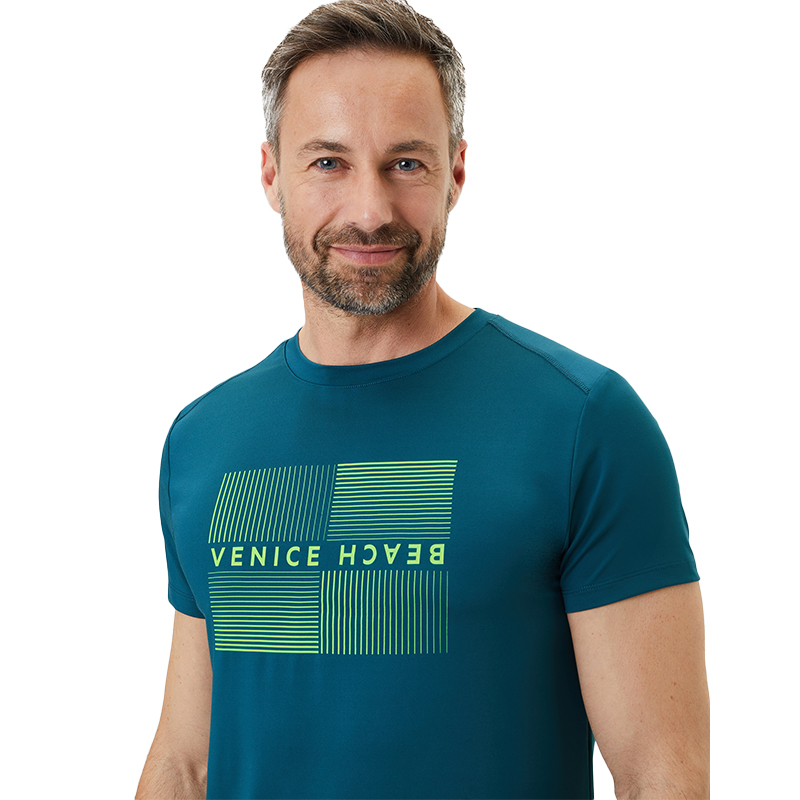 Das Venice Beach Herren T-Shirt Hayes DMS 03 bietet dir mit Funktionsmaterial und Stretchanteil maximalen Komfort – ideal bei sportlichen Aktivitäten. Der lockere Schnitt sorgt für Bewegungsfreiheit, der Rundhalsausschnitt und der Print vorne setzen Akzente.