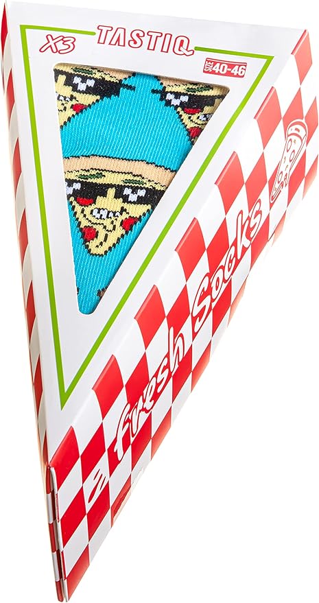 TASTIQ UNISEX SOCKEN PIZZA SOCKS 3-PACK bieten dir hohen Tragekomfort und ein witziges Design für alle Pizza-Fans. Das weiche, elastische Material sorgt für eine bequeme Passform und macht sie perfekt für Alltag und Freizeit. Ideal, um deinem Outfit eine humorvolle Note zu verleihen.
